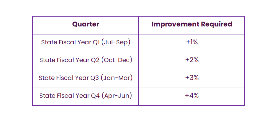 Quick Example: Baseline 2.375 | Q2 needs 2% improvement → Target is 2.423.